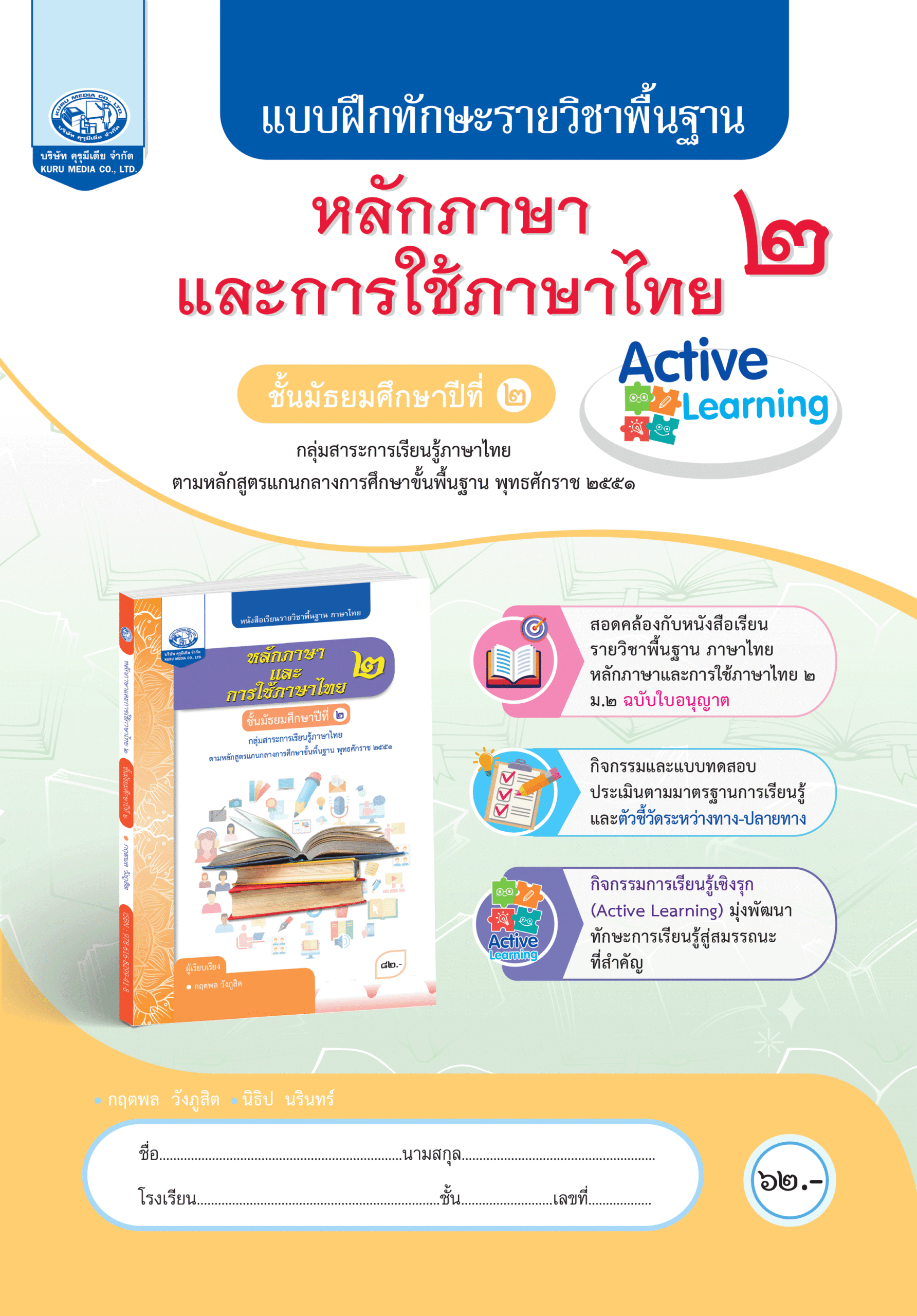 แบบฝึกทักษะรายวิชาพื้นฐาน หลักภาษาและการใช้ภาษาไทย 2